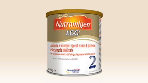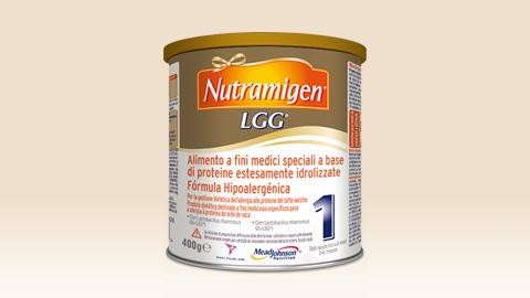 Nutramigen LGG® è una combinazione unica di Nutramigen e del probiotico Lactobacillus rhamnosus GG (marchio registrato LGG®) e viene utilizzata per la gestione dietetica dell'allergia alle proteine del latte vaccino da lieve a moderata.