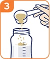 †Usare solo il misurino accluso nel barattolo per misurare la polvere. Un misurino raso e non compresso (4,5 g) si aggiunge ad ogni 30 ml di acqua