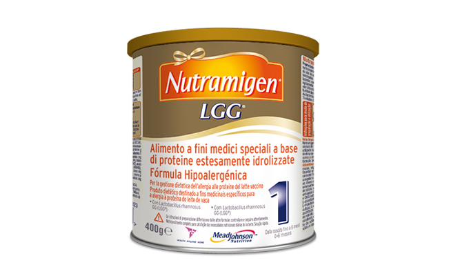 Nutramigen LGG® è una formula ipoallergenica che contiene il probiotico Lactobacillus rhamnosus GG (marchio registrato LGG®); tale combinazione favorisce la gestione dietetica dell'allergia alle proteine del latte vaccino, aiutando i lattanti a ritornare più velocemente a una dieta normale.1